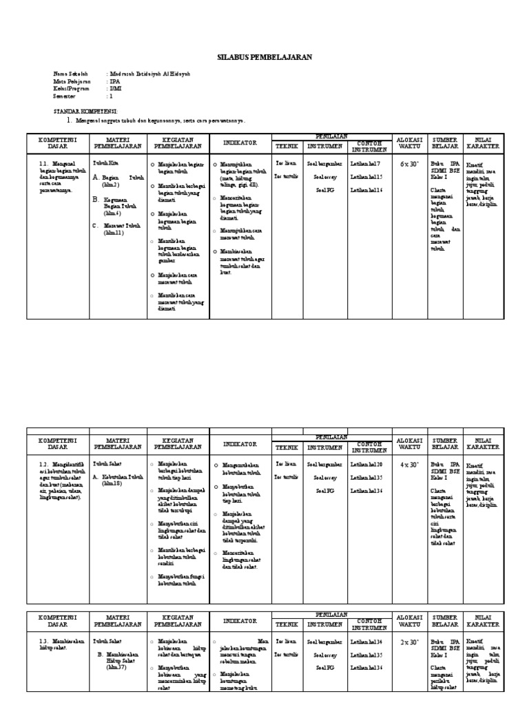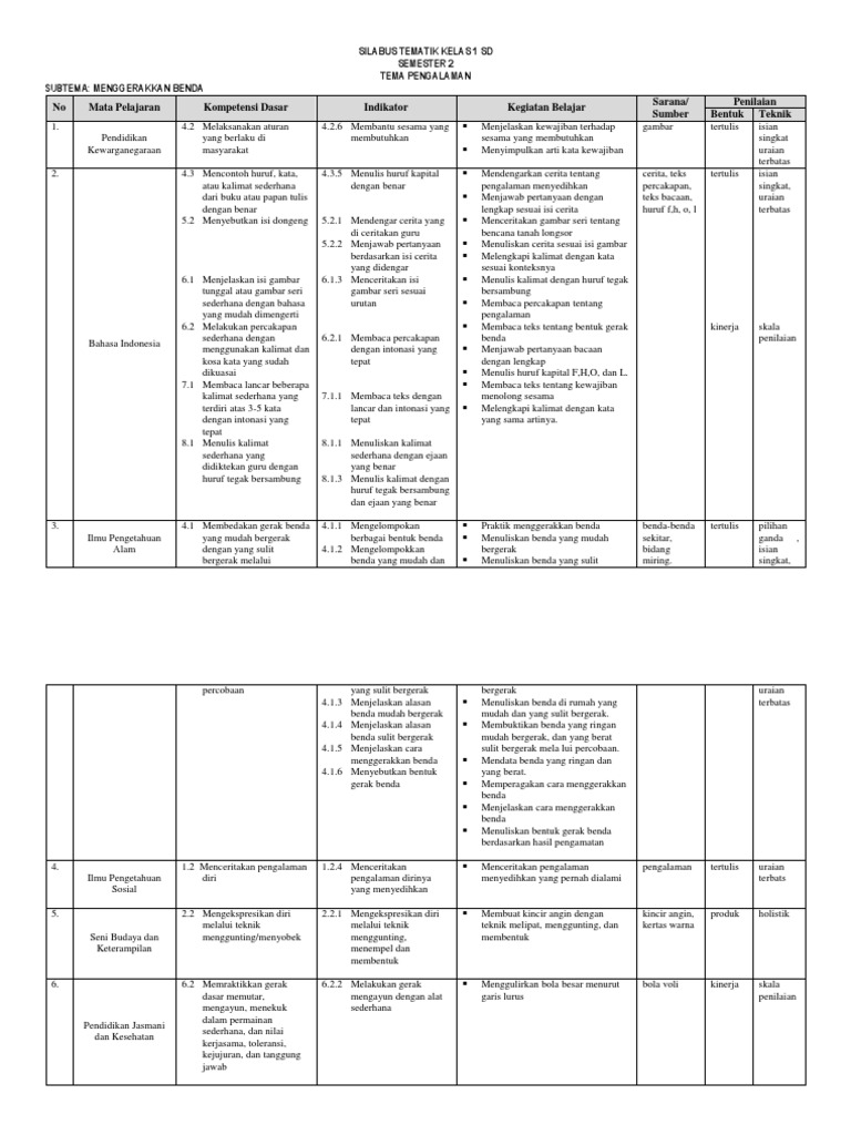 Memiliki perilaku jujur, disiplin, tanggung jawab, santun, peduli, dan percaya diri dalam berinteraksi dengan keluarga, teman, dan guru. Silabus pembelajaran sekolah kelas mata pelajaran semester standar kompetensi kompetensi dasar 7.1 membaca nyaring dengan ucapan dan intonasi yang tepat dan berterima yang melibatkan: Tak terasa tahun ajaran baru 2020/2021 akan segera berlangsung. Silabus ini terdiri dari 8 kolom yang terdiri dari mata pelajaran, kompetensi dasar, indikator, materi pembelajaran, kegiatan pembelajaran, penilaian, alokasi waktu dan sumber belajar. 423.5/5/2010 tanggal 27 januari 2010.
